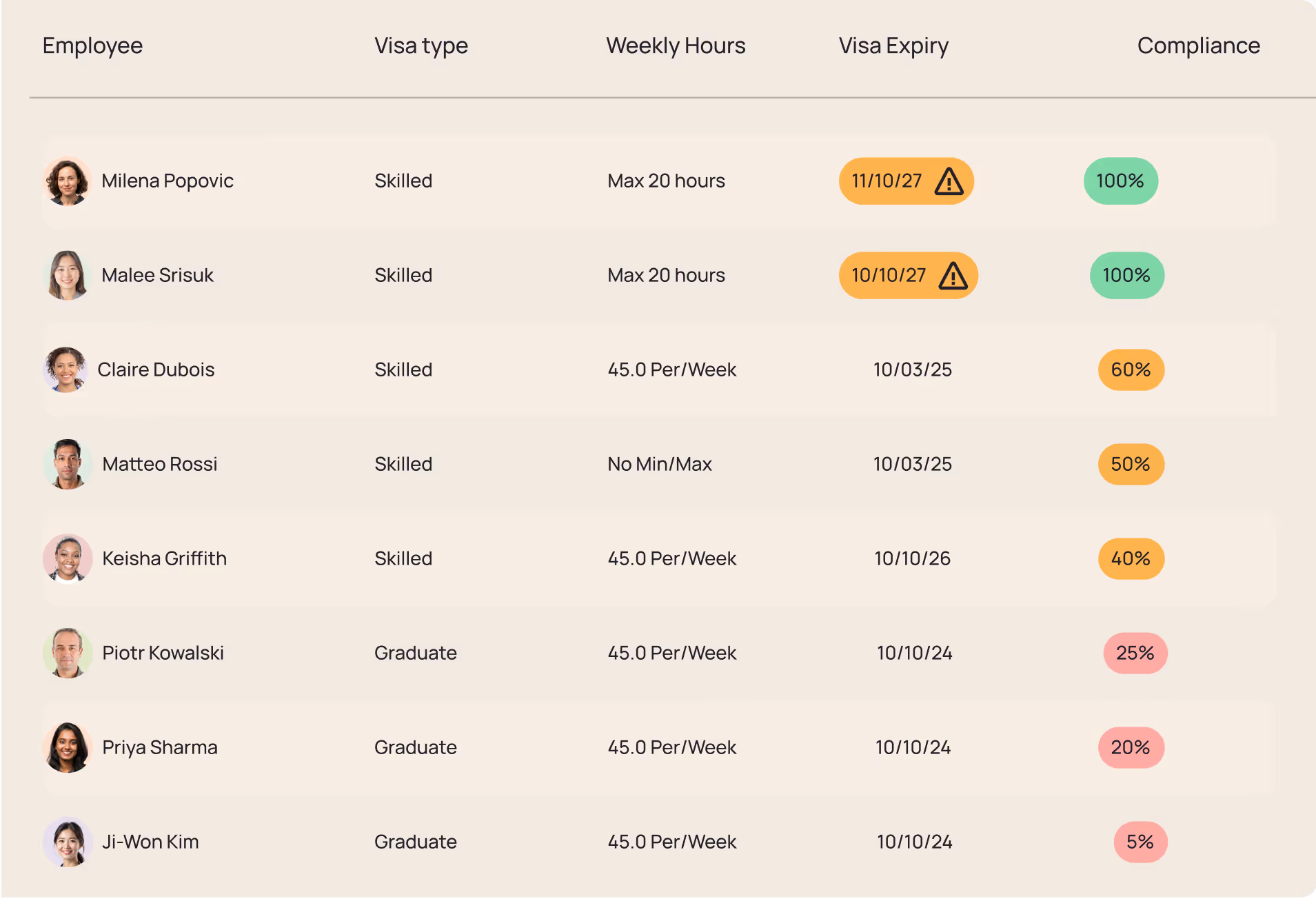 - Track visa status, expiry dates, and CoS usage automatically